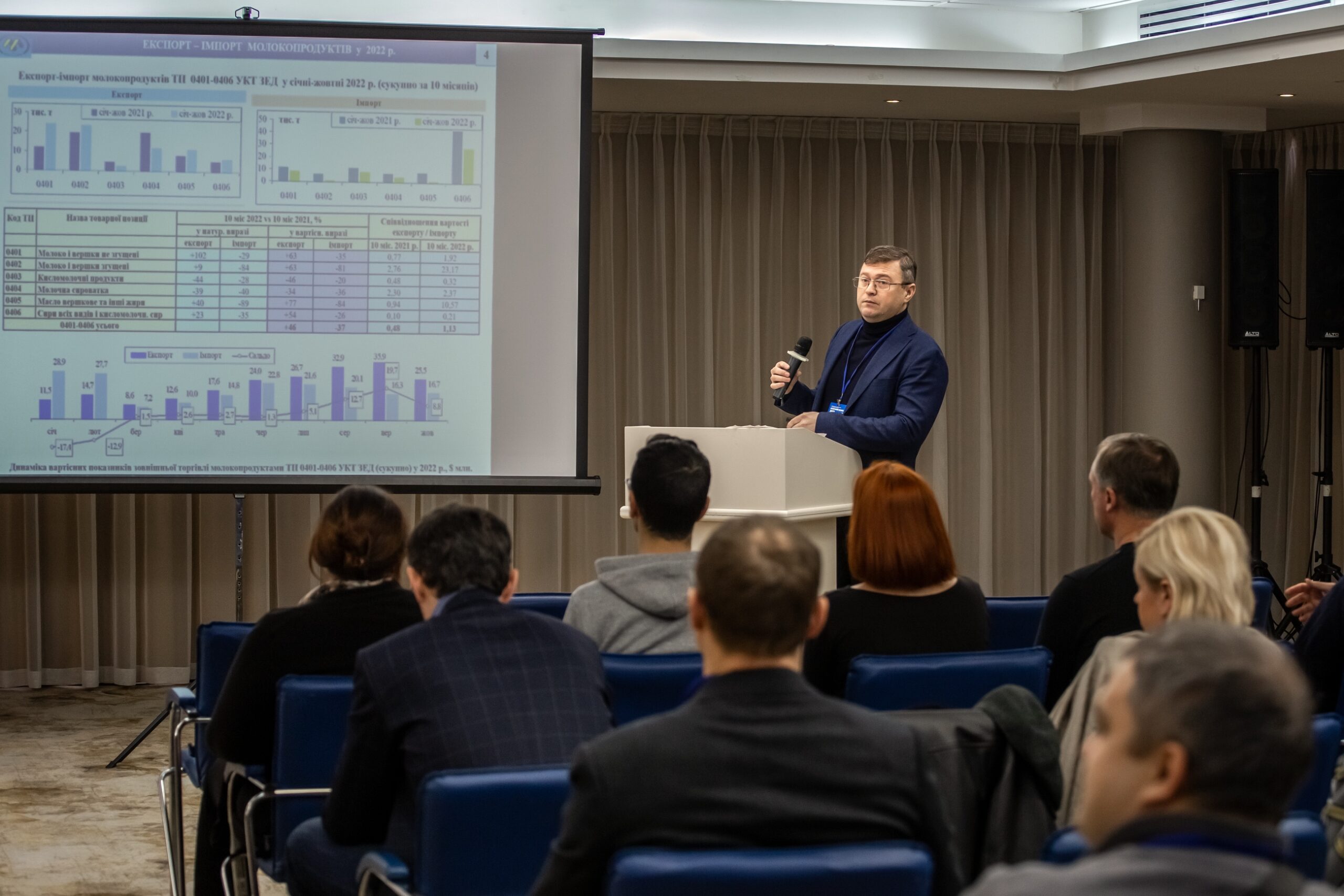 The speech of Leonid Tulush, Head Expert-Analytical Service of the Dairy Union of Ukraine, was devoted to the issue of impact of tax policy on the state of the dairy industry. In his presentation, he showed the impact of not always successful legislative innovations introduced in different periods of time on the state of the dairy industry, and spoke about the efforts made by the Dairy Union to create favorable conditions for the development of dairy industry.